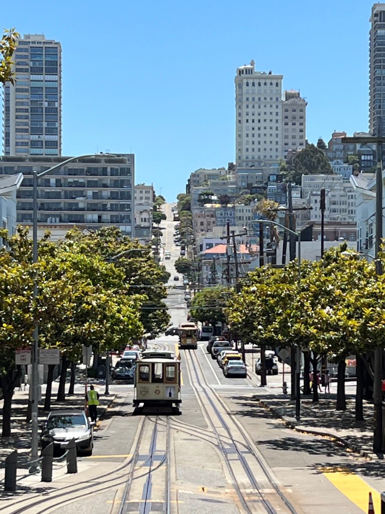 Wir haben natürlich die Top-Sehenswürdigkeiten und Gegenden besucht, für die San Francisco berühmt ist. Wie die Golden Gate Bridge, die Lombard Street (die berühmteste kurvenreiche Straße der Welt😊 – kennt man aus vielen Filmen oder TV-Serien wie z.B. die Straßen von San Francisco), das Walt Disney Family Museum (Museum über die Lebensgeschichte von Walt Disney), Cable Cars (es gibt noch 3 Linien, die die Hügel erklimmen) , den Union Square, den Golden Gate Park, Pier 39 mit Fisherman’s Wharf (ein bekannter Küstenabschnitt mit Restaurants und Shops), das Ferry Building (hier findet man eine große Markthalle mit Spezialitäten und am Wochenende zusätzliche Marktstände im Freien) und das Lucas Film-Headquarter (ein Muss für alle Star Wars Fans 😎). Nur die ehemalige Gefängnis-Insel Alcatraz haben wir ausgelassen, das ist sich zeitlich irgendwie nicht ausgegangen.