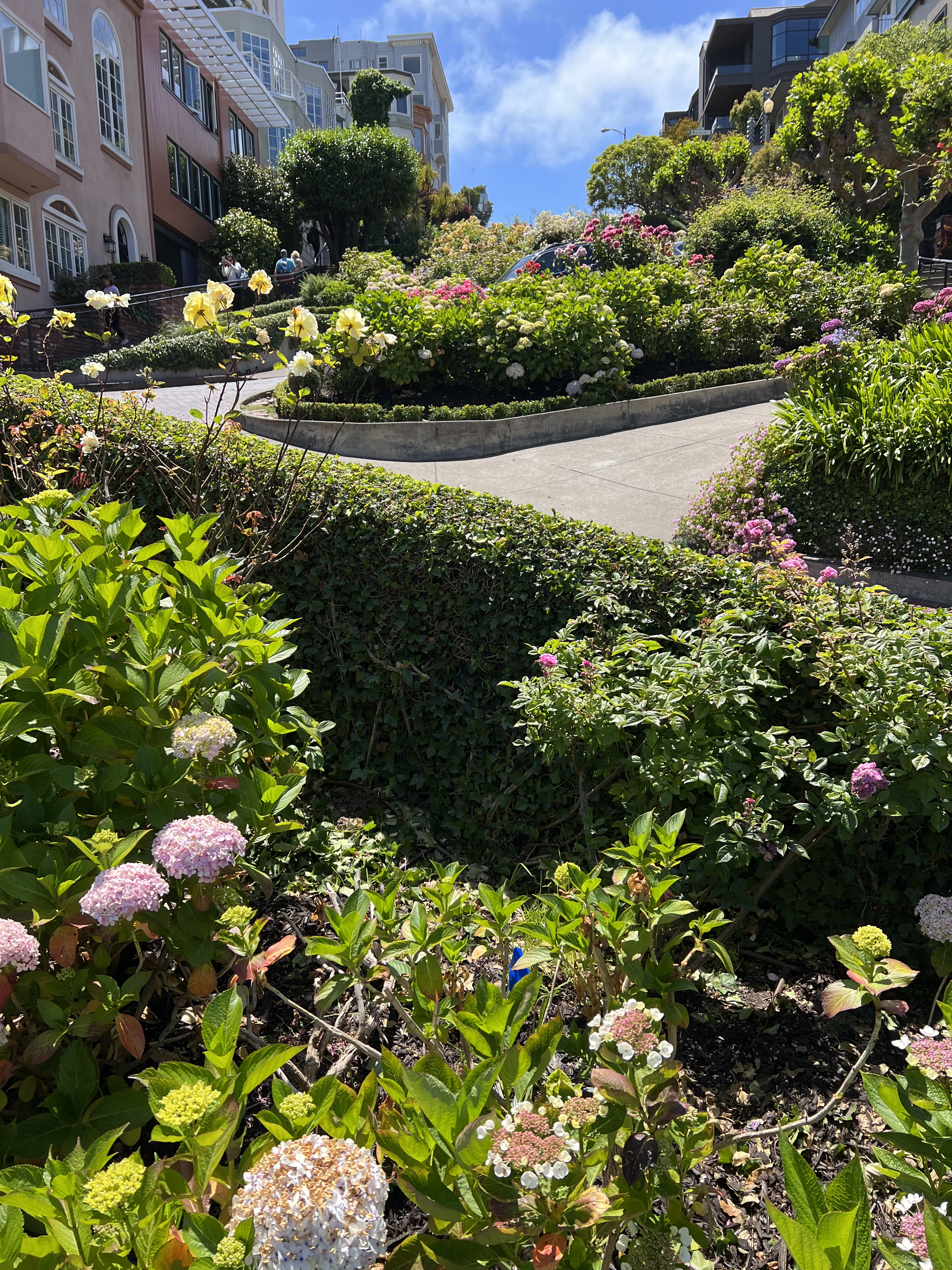 Wenn man durch die Straßen von San Francisco streift, kommt man zu wunderbaren Plätzen und Gegenden. Aufgrund der Hügel ergeben sich immer wieder tolle Ausblicke! Man findet bunte Häuserfronten mit gepflegten Vorgärten, großzügige Parkanlagen oder sogenannte POPOs 😊- das sind private Kleinode, die Besuchern offen stehen.